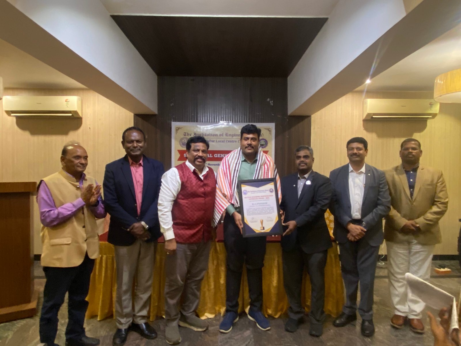 The IEI TVLC Industry Participation Outreach Award – 2025 was presented to Er. Veerasami Venkatesan, Senior Section Engineer – CNW, for his invaluable support in strengthening industry collaboration for IEI TVLC. His contributions in facilitating industrial visits, technical exposure, and training opportunities have greatly enhanced students’ practical learning and reinforced strong industry–academia linkage.